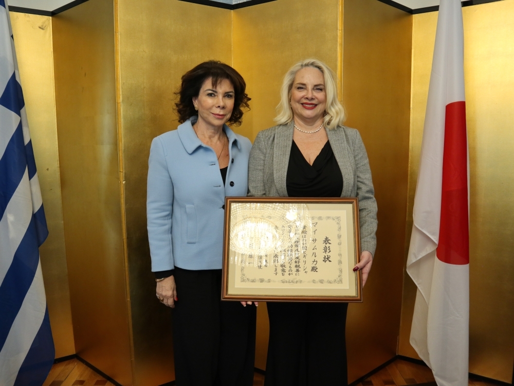 Η κ. Μάη Σαμούρκα έλαβε τον Έπαινο του Πρέσβη της Ιαπωνίας για το 2025 ως αναγνώριση της έμπρακτης συνεισφοράς της στην προώθηση της αμοιβαίας κατανόησης μεταξύ Ιαπωνίας και Ελλάδας, κατά τη διάρκεια τελετής που έλαβε χώρα την Τρίτη 9 Δεκεμβρίου, στην πρεσβευτική κατοικία.
