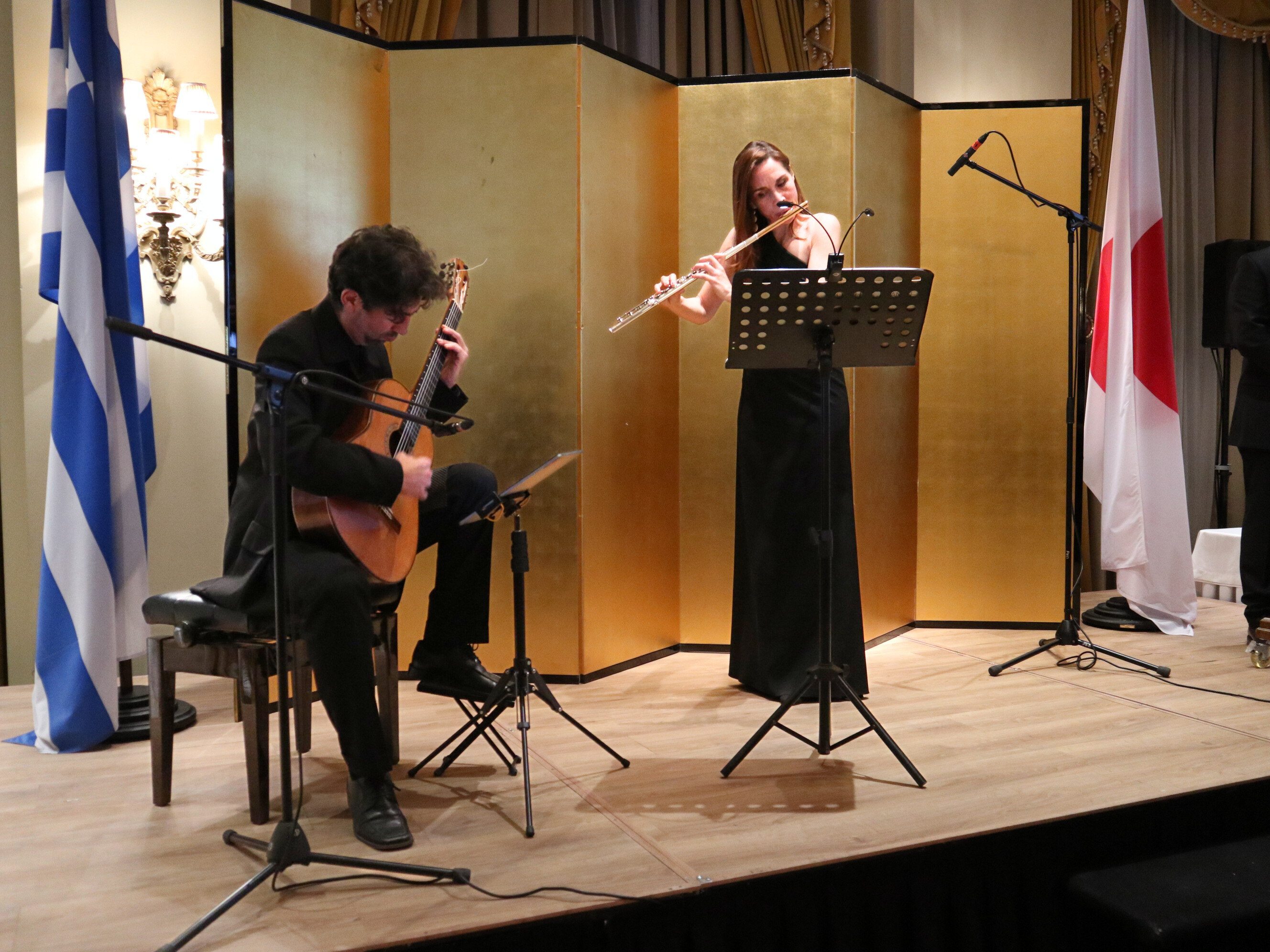 開会式では、フルート奏者のゲラキ氏とギター奏者のコンダクサキス氏により「荒城の月」が演奏され、美しいアンサンブルに聴衆は魅了されました(トヨタヘラス社協賛)。