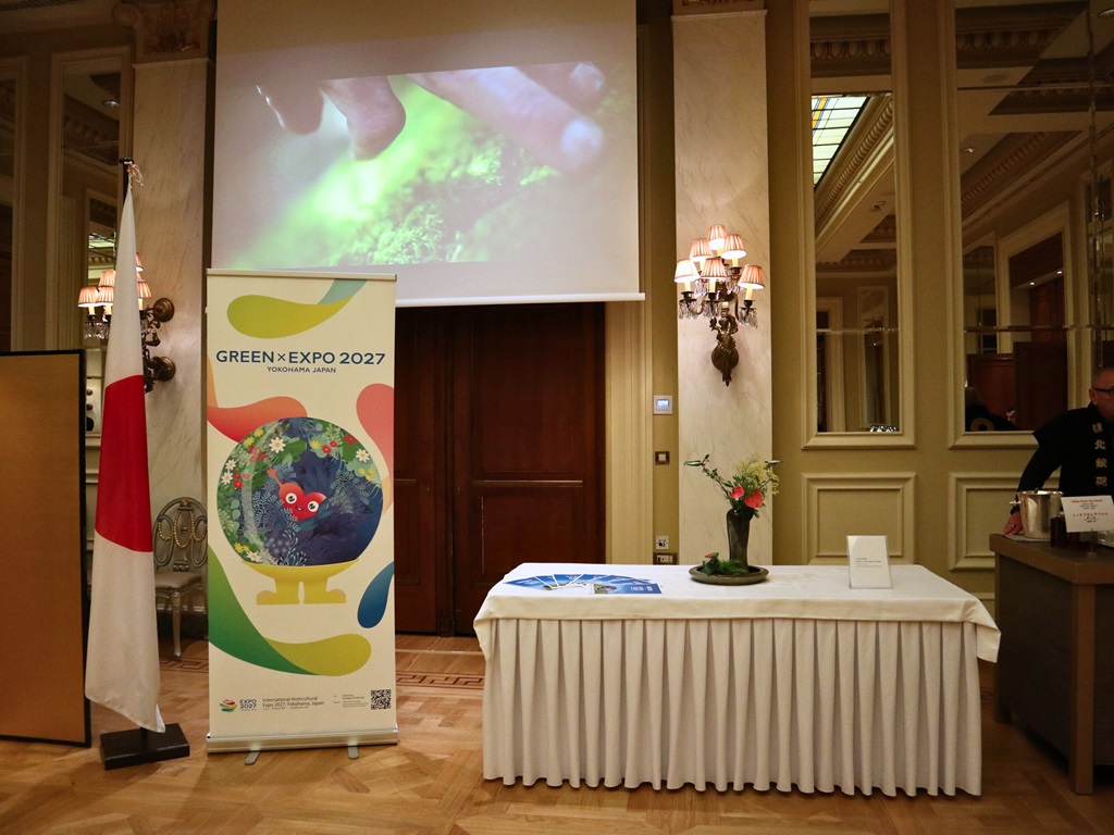 会場では、寿司をはじめ日本大使公邸シェフによる和食がふるまわれたほか、日本酒とウイスキーに親しむ機会も提供され、2027年国際園芸博覧会(2027年3月~9月横浜市にて開催)の特設PRコーナーも設置されました。